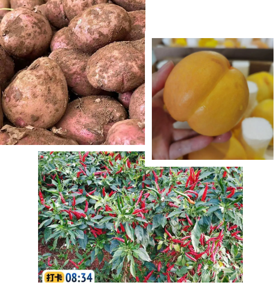各类瓜果、蔬菜、中药材、茶叶、烟叶、果树等经济作物及大田作物。