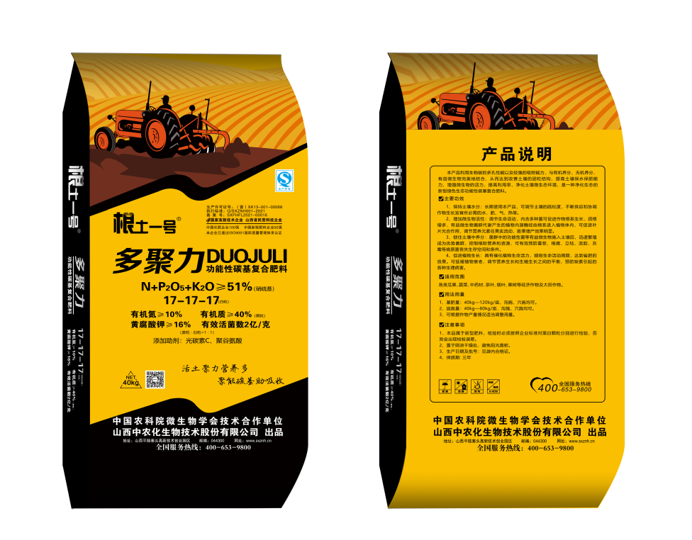 本产品利用生物碳的多孔性能以及较强的吸附能力,与有机养分、无机养分、有益微生物完美地结合,从而达到改善土壤的团粒结构,提高土壤保水保肥能力,增强微生物的活力,提高利用率,净化土壤微生态环境,是一种净化生态的新型绿色生态功能性碳基复合肥料。