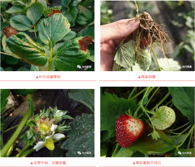 1.草莓花期、果期缺钙的危害和症状: