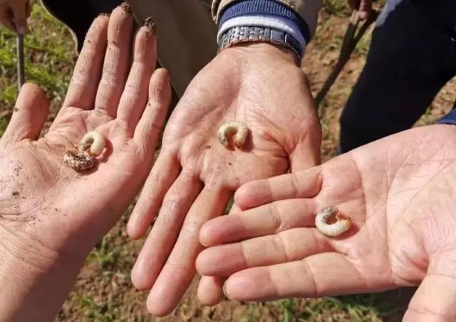 针对这种情况,农民怎么办?有农民想办法灭杀害虫,由于蛴螬深藏地下,除了常规的喷洒专用农药外,农民不得已对严重的地块采用铲子挖土刨虫的办法灭杀害虫,并对缺苗断垄的地方进行补苗。