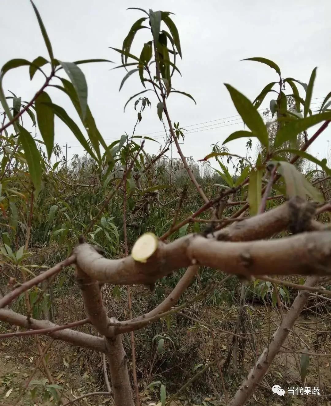 ①成花快的品种营养枝叶芽节位低,冬剪整枝时采用剪桩留芽法留桩高点、低点都有叶芽存在肯定都能长出条来。如特别容易成花的枣油桃等品种,结果枝2~4寸基部最容易形成纯花芽没叶芽(复合花芽),剪桩留芽后没叶芽就会出现开花坐果不长枝现象发生,自然光腿脱节。