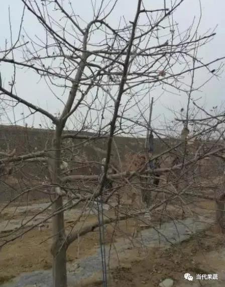 一方面减少养分消耗,另一方面为中部下垂枝结果腾出空间,充分利用优势部位结果,提高产量和果实品质。通过2~3年提干,使主干高度在1米以上,最后1.5米以上,这样可使地面受光量增加,有利于提高地面反射光的利用率。