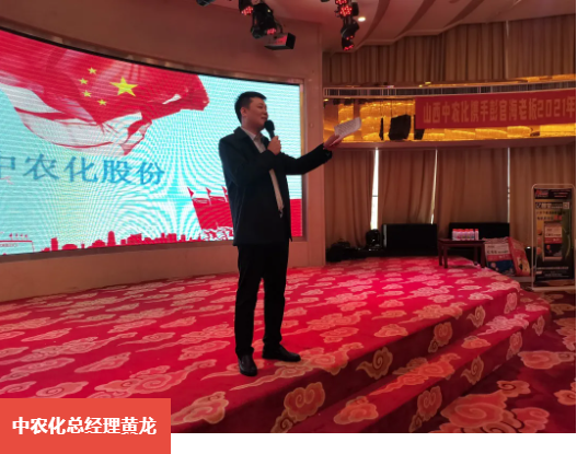 中农化副总经理刘佩昊首先上台为大家介绍了中农化股份的发展及未来预期方向,“中农化始着眼于“在中国,为农业”的理念,率先提出了符合当下农业发展趋势的4C种植新模式,也在实际生产活动中不断践行,我们不断创新,全力开发更多满足作物营养需求和植保需求,提升作物品质,一肥多效的新型功能性产品”刘佩昊说道,“经过潜心研发,中农化隆重推出了根土一号谷氨糖功能复合肥料和乳糖叶面肥系列,真正让农民实现资源的高效利用,让作物优产丰收!”