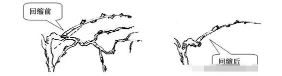 将两年生以上的枝组减掉一部分,叫做回缩。