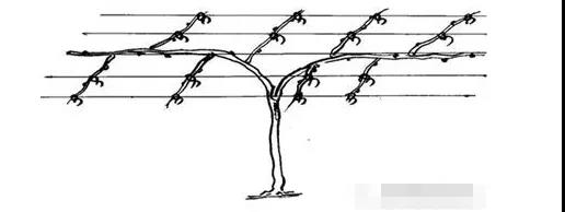 四年生树的主要任务是培养主蔓和侧蔓,要重点围绕培养八个侧蔓进行冬季修剪。