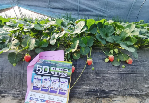 大棚草莓扣棚保温后,正值花芽发育期,随后很快现蕾、开花、结果。顶花序采收后,腋花序又抽生并开花结果,植株负担重,如不及时施肥,容易表现早衰。追肥至少进行4次,分别于开花前、果实膨大期、侧花序发生期、侧花序结果期追施,施肥尽量选择优质水溶肥,减少复合肥的使用,并每隔10天左右叶面喷施一次叶果靓。